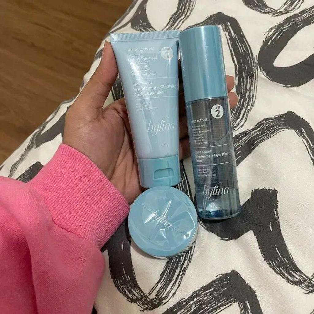 First-time buyer of this Byfina set and it did NOT disappoint! 💙✨I love how it smells sooo good 😍 The toner packaging is super hassle-free, and im so inlove with the cream and facial washh ❤️This is officially my new skincare routine! 💯